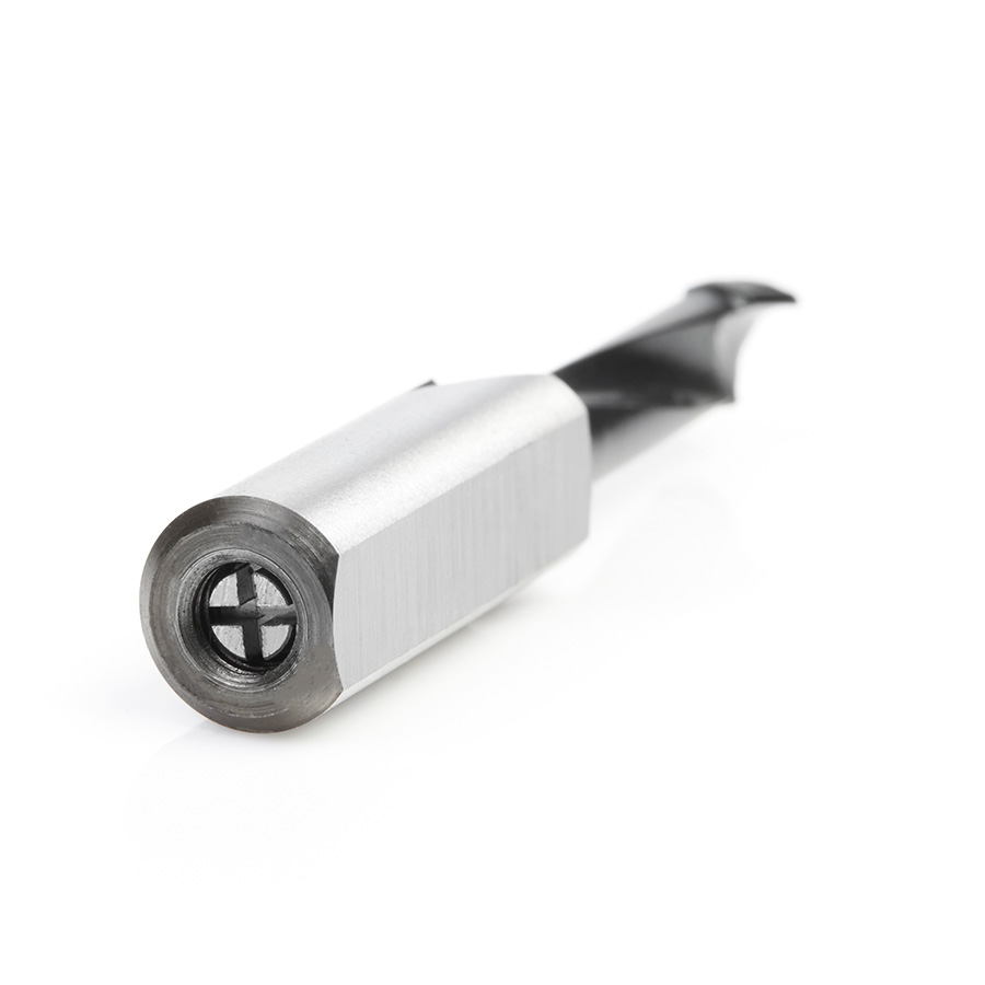 Amana’s coating is applied onto the bit at a temperature of 570° F. The coating reduces the friction between the chip and the body inside the flute and it helps to clear the chips out of the hole during the drilling creating a cooler drilling area, no burning and longer lasting cutting edge.