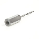 Amana Tool® dowel drills are coated with a special Polytetrafluoroethylene (PTFE), a non-stick color coating. In cases where the carbide tip cutting edges are coated, there is no need to sand the coating off before use. Once the tool starts drilling, the coating is cleared off the needed cutting edge right away. Amana’s coating is applied onto the bit at a temperature of 570° F.