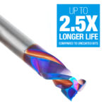 Our Spektra™ bits feature a nACo® nanocomposite coating with an extreme nanohardness and heat resistance. With a brilliant distinctively-tinted coloring nACo provides additional improvements in four critical aspects of router tooling.