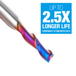 Our Spektra™ bits feature a nACo® nanocomposite coating with an extreme nanohardness and heat resistance. With a brilliant distinctively-tinted coloring nACo provides additional improvements in four critical aspects of router tooling.
