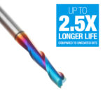 Our Spektra™ bits feature a nACo® nanocomposite coating with an extreme nanohardness and heat resistance. With a brilliant distinctively-tinted coloring nACo provides additional improvements in four critical aspects of router tooling.