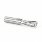 Spiral-flute bits combine a shearing action in cutting with an augering action in chip clearance. The shearing action yields an especially clean accurate cut while the augering action clears chips from the cut. The ‘Down-Cut’ cuts from the surface down leaving a smooth edge at the surface. Special unique carbide grade increased clearance geometry and razor-sharp cutting edges with polished flutes provide a superior finish and longer tool life especially in abrasive materials. Great for production settings and excellent for creating grooves and dado cuts in particleboard, plywood and laminate. Primarily used on CNC machines and other automatic routers. Warning: This tool has an open flute design (not anti-kickback) and is intended for high feed-rate CNC machine use only. Do not use in portable routers. Vectric compatible tool file for 46208 available for download, . click here