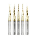 46280-5, 5-Pack CNC 2D and 3D Carving 6.2 Deg Tapered Angle Ball Tip x 1/32 Dia x 1/64 Radius x 1 x 1/4 Shank x 3 Inch Long x 3 Flute Solid Carbide Up-Cut Spiral ZrN Coated Router Bits