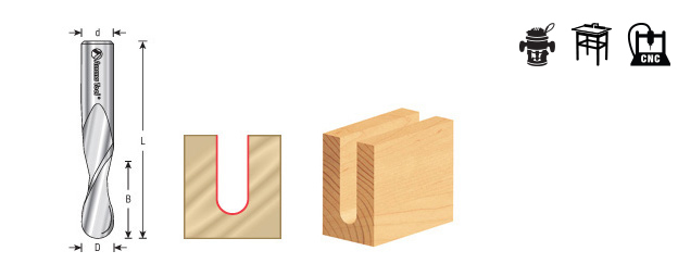 Used for carving decorative doors and sign manufacturing. Up-Cut design leaves an excellent finish and expels chips quickly.