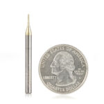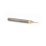 46471 CNC 2D and 3D Carving 0.10 Deg Tapered Angle Ball Tip x 1mm (.0394″) Dia x 0.5mm (.019″) Radius x 3mm (.118″) x 3.175mm (1/8) Shank x 38.1mm (1-1/2) Long x 3 Flute Up-Cut Spiral Solid Carbide ZrN Coated