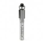 Use this flush trimming bit for laminate work or for template and pattern work. For template application, the bearing follows the template, while the cutting edges trim the workpiece. With the router handheld, the template is on the bottom of the work. With a table-mounted router, the template is on top. A two-flute bit is a good general-purpose choice, providing fast cuts and good finishes. Excellent for template work.