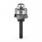 An assembly offers the option of switching cutters – from flush trim to either of two bevel trims – without removing the bit from the router or even changing the depth-of-cut setup. Four flutes yield a smooth, crisp cut finish.