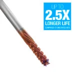 Our Spektra™ bits feature a nACo® nanocomposite coating with an extreme nanohardness and heat resistance. With a brilliant distinctively-tinted coloring nACo provides additional improvements in four critical aspects of router tooling.