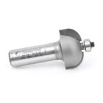 For best results with a large radius cutter, make a preliminary cut with a smaller radius bit or chamfer the workpiece to reduce the amount of stock to be removed in the finish pass. This will produce a smoother finish and prolong tool life. The largest diameter bits must be run at reduced speed. Use in a handheld or table-mounted router.