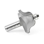 The Roman ogee bit, which has a convex curve coming off the bearing, produces the reverse of the ogee (it isn’t an upside-down ogee). The curve starts at the top as a concave, and fairs down into a convex curve. Use in a handheld or table-mounted router.