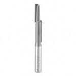 Two cutting edges spaced 180 degrees apart, each half the length of its flute. One extends from the tip to the middle of the flute, the other from the middle to end. The configuration combines the cutting speed and chip clearance of a single-flute bit with the finish of a double-flute bit. Excellent bit for cutting dense or abrasive man-made materials and panel goods.