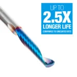 Our Spektra™ bits feature a nACo® nanocomposite coating with an extreme nanohardness and heat resistance. With a brilliant distinctively-tinted coloring nACo provides additional improvements in four critical aspects of router tooling.