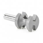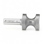 Shape the full edge of a workpiece with a bullnose radius bit. Ideal for shaping stair treads, window sills, table and counter edges, shelves, and making moldings. The “nose diameter” (M) is the thickness of stock that can be nosed, i.e., given a full 180-degree roundover. Flats at top and bottom of the cutting edges create fillets on stock thicker than the nose diameter. Must be used with an edge guide on handheld routers or the fence on a router table. ‘M’ denotes thickness of material on which a full 180° roundover can be