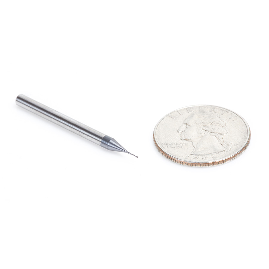 High performance designed for micro applications. Micro machining applications involve miniature tooling that requires very high attention to tolerances and detail in their construction. These end mills incorporate 30 degree helixes and AlTiN coating to insure a high degree of precision. Miniature end mills also routinely require RPMs in excess of 40,000 RPMs or more so attention to both RPM capacity and accurate chip-loads is mandatory.