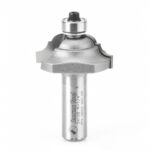 The positions of the bead and the cove are reversed on this series of bits, with the bead coming off the bearing. With the optional 3/8″ pilot bearing, the bit produces a fillet at the base of the bead. Largest diameter bits should be run at reduced speed. Use in a handheld or table-mounted router.