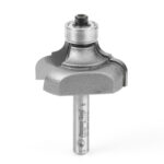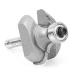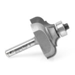 The positions of the bead and the cove are reversed on this series of bits, with the bead coming off the bearing. With the optional 3/8″ pilot bearing, the bit produces a fillet at the base of the bead. Largest diameter bits should be run at reduced speed. Use in a handheld or table-mounted router.