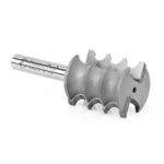 Three uniform beads are formed in one pass with this bit. Use it to produce reeded pilasters or table legs. Must be used with an edge guide or fence. Use in a handheld or table-mounted router.