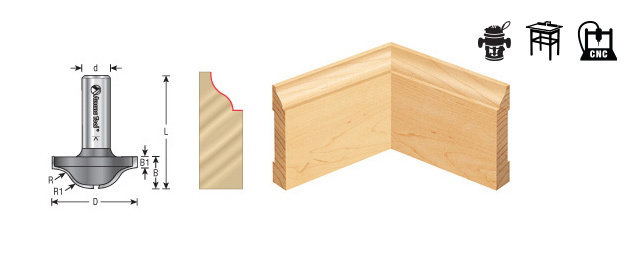 54297 Carbide Tipped Base Molding Ogee Edge Detail 5/16 x 3/8 Radius x 1-7/16 Dia x 19/32 x 1/2 Inch Shank