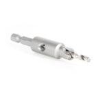 Drill pilot hole and tapered countersink for wood screws. Carbide tipped for long lasting results in hard wood, plywood, plastics, etc.