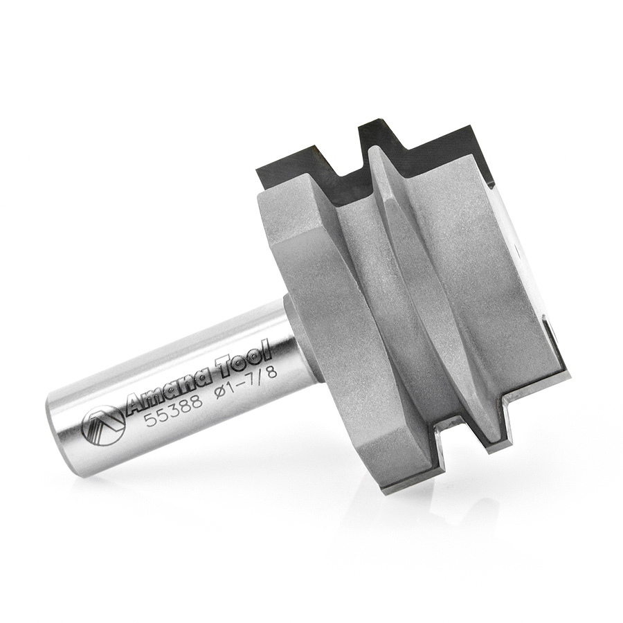 Bit works on stock between 5/8″ and 1″ in thickness. Must be used in a table-mounted router. Since there is no guide bearing, use the router-table fence to control the cut.