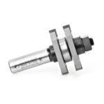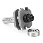 Cut perfectly fitted tongue-and-groove joints on stock between 1/2″ and 3/4″ thick with a table-mounted router and this assembly. The tool consists of an arbor with an integral shank, two identical, removable slotting cutters, and a pair of bearings. To cut tongues, sandwich one bearing between the two cutters (as in drawing A). To cut slots, mount one cutter between the two bearings (as in drawing B). Can be used on 1/2″ through 3/4″ thick material.