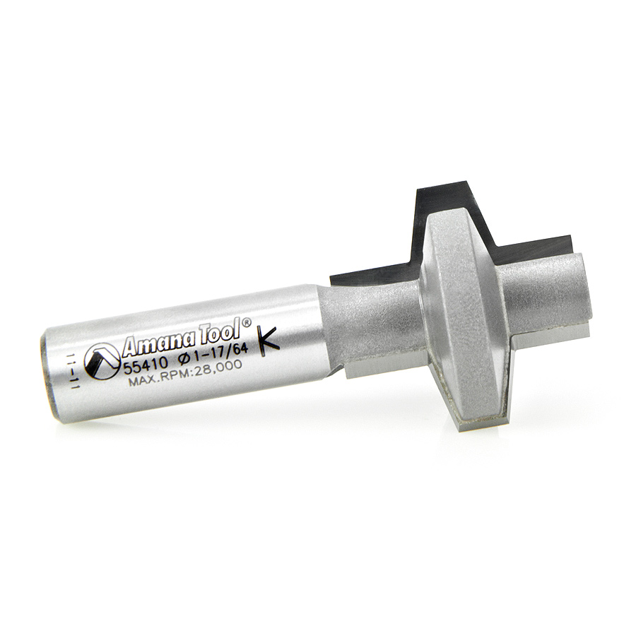 The tongue-and-groove joint cut by this two-bit set can be used for applications as diverse as assembling broad tabletops and other panels and making strip flooring. Use it on stock from 5/8″ through 1-1/4″ thick. The bits are available individually or as a two-piece set. Use in a table-mounted router.