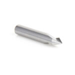 For fine-line “engraving” in wood and composite materials, use either of these compact bits. Two-flute configuration and modest length (which minimizes vibration) combine to produce crisp, clean cuts.