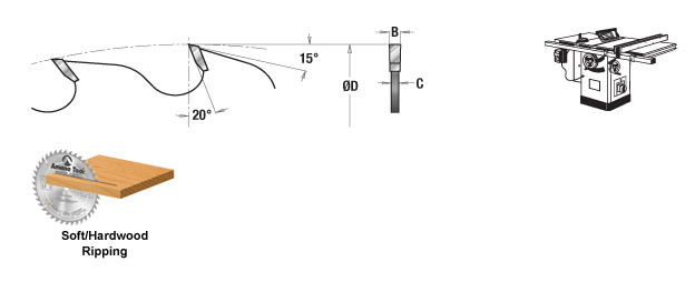 This blade is the classic ripper for both hardwood and softwood. It features the flat-top grind for cutting with the grain efficiently; ample gullets for fast chip-clearance; expansion slots and turbulence-reducing copper plugs.