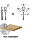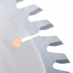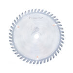 While this blade handles general trimming and crosscutting of hardwood and softwood, plywood and composition materials, it excels at cutting single or double-sided plastic-laminated material. It leaves a smooth, clean, chip-free finish on the top and bottom edges. The blades in this series feature a high tooth count, the triple-chip grind and a 10° hook angle for a successful compromise between feed effort and cut finish.