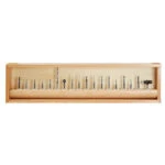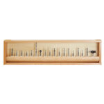 Stored in a solid wood showcase storage box with a Plexiglas® clear lid.
