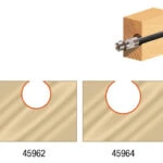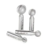Cut channels for pipes or cables using the ball end bit. The profile requires the cut to be made in a single pass. To reduce stress on the bit, cut an initial groove using a straight bit matching the D1 dimension of the ball end bit. Profile is useful as a ‘conduit’ for cables, pipes, etc. Can be used with handheld, table-mounted and CNC routers.