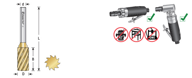 BURS-082NF Solid Carbide Cylindrical Shape with End Cut 1/4 Dia x 5/8 x 1/4 Shank Non-Ferrous ZrN Coated SB Burr Bit for Die-Grinders