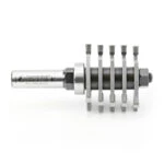 Cut strong, attractive box joints for small boxes, shallow drawers and trays with this bit. By taking three passes it can be used with stock up to 1/2″ thick and 4″ wide. The most accurate way to adjust the height of the bit while ensuring a good fit when taking multiple passes is to align a cutter on the bit with one of the previous cuts. The bit has five uniformly spaced 3-wing slotting cutters and a ball-bearing guide on a 1/2″ shank arbor. Use in a table-mounted router for best results. Maximum RPM 13,000.