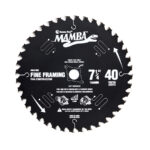 MA7400 Top Quality Carbide Tipped Thin Kerf Fine Framing and Decking Mamba Contractor Series 7-1/4 Inch Dia x 40T, ATB, 15 Deg, 5/8 Bore with Diamond Knockout Circular Saw Blade