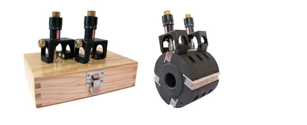 Precise adjustments for leveling knives Tool is calibrated with metric dimensions Simple to use Heavy duty magnets Spring loaded magnetized ceramic stop Works with size drums or knives Includes wooden box with instructions Works for planers from 12” – 24” Planer head diameters 65mm to 130mm