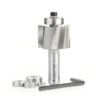 The Multi-Rabbet bit steps in 1/16″ increments from a 1/4″ cut width to 1/2″, simply by switching ball-bearing guides. Five different bearings are provided. Depth of cut capacity of 1/2″. Use in a handheld or table-mounted router.