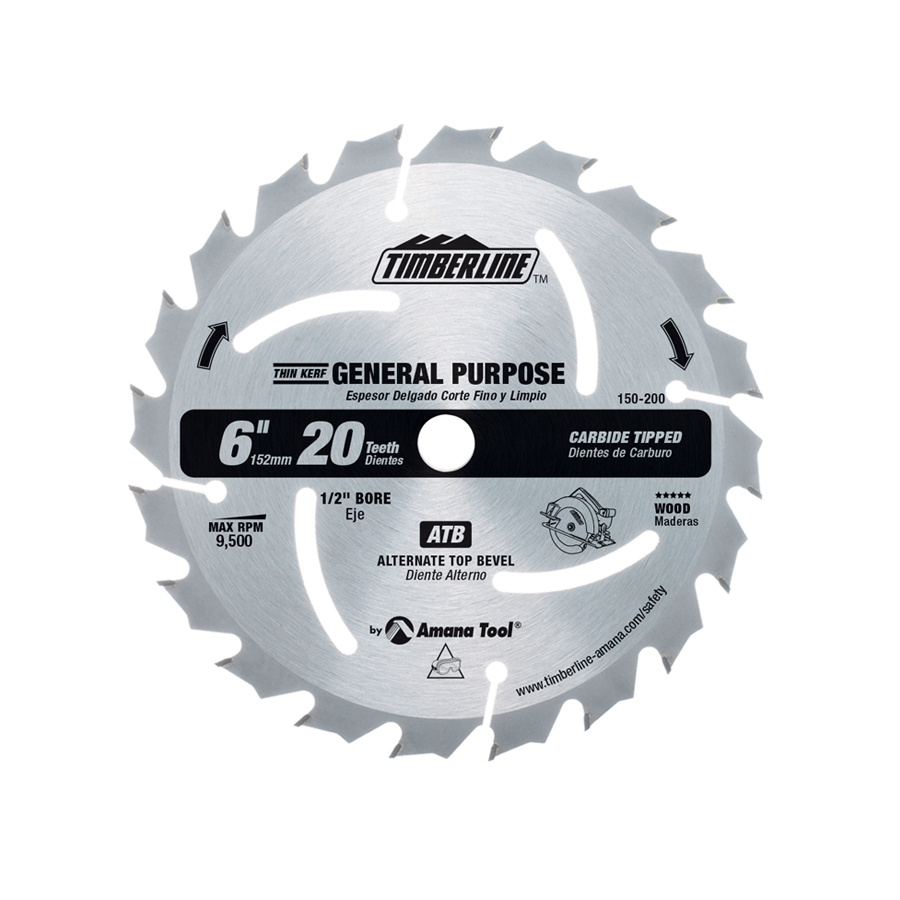 150-200 Carbide Tipped General Purpose Cutting Trim 6 Inch Dia x 20T ATB 20 Deg 1/2 Bore
