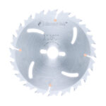 Designed for ripping hardwood and softwood, this exceptional blade cuts fast and smooth. The flat-top grind and the high positive hook angle reduce feed effort. The anti-kickback limits the thickness of chip; taken to offer a safer cut. Cooling slots in the body prevent excessive heat build-up.