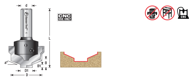 RC-2483 CNC Insert Nova System Traditional Plunge Form for MDF & Wood Cabinet Doors 1-3/8 Dia x 25/64 x 1/2 Inch Shank