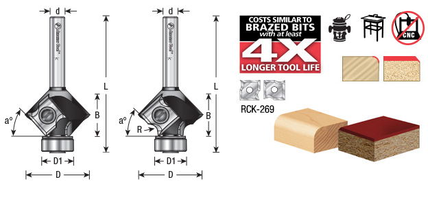 These popular insert router bit profiles provide all woodworkers access to the industrial-grade technology, at an affordable price. By replacing worn knives instead of sharpening standard carbide tipped bits, router bit dimensions, cutting quality and accuracy remain constant during the life of the tool.